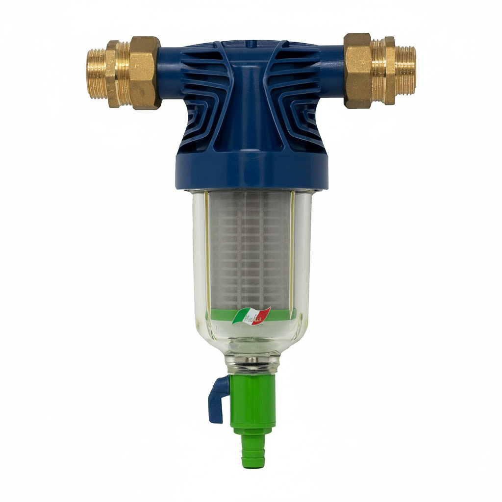 סנן Smile מסנן חול, חלודה וחלקיקים עד גודל 89 מיקרון ומותאם במיוחד לדירות. יתרון מרכזי: אין צורך בהחלפת סננים – הניקוי מתבצע בקלות באמצעות ניקוז החלק התחתון פעם בחודש או כשיש ירידה בלחץ המים.
