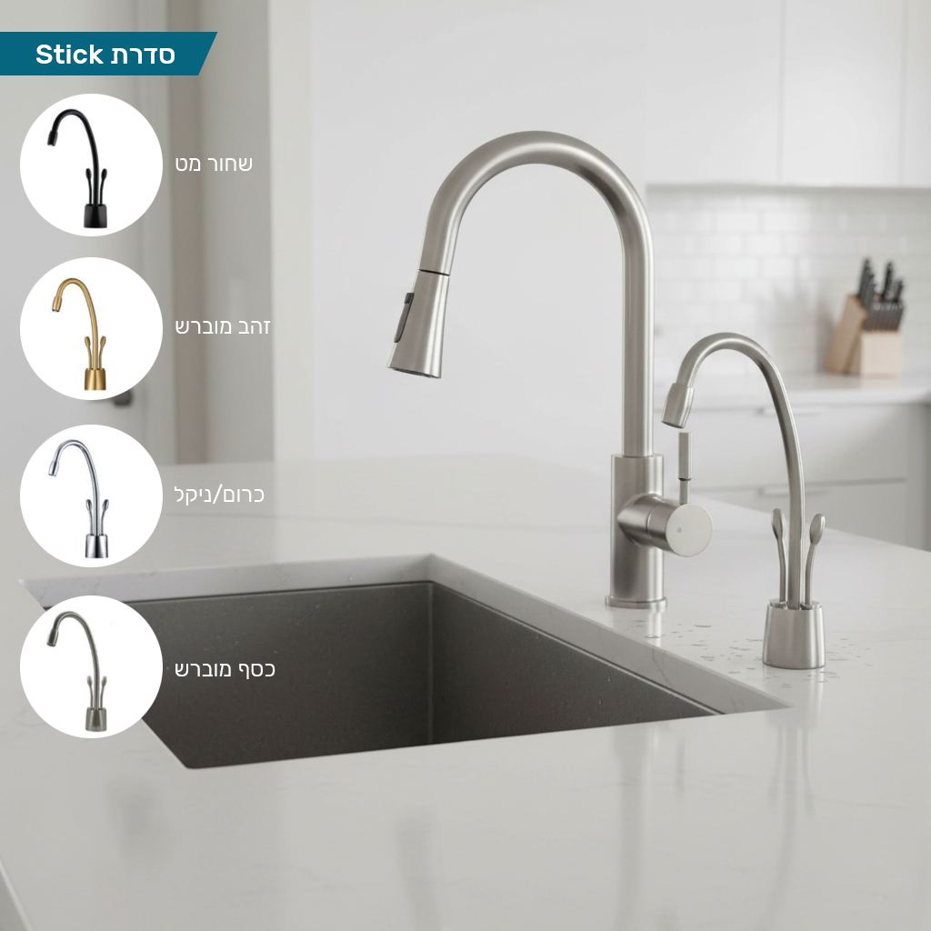 לבחירתכם 2 סוגי ברזים מעוצבים ב-4 גוונים יוקרתיים המתאימים לכל מטבח: