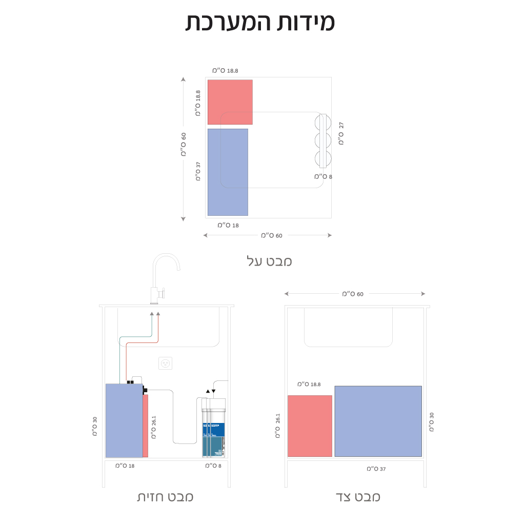 ✔️ מערכת תת־כיורית המתאימה להתקנה בארונות החל מרוחב 60 ס"מ